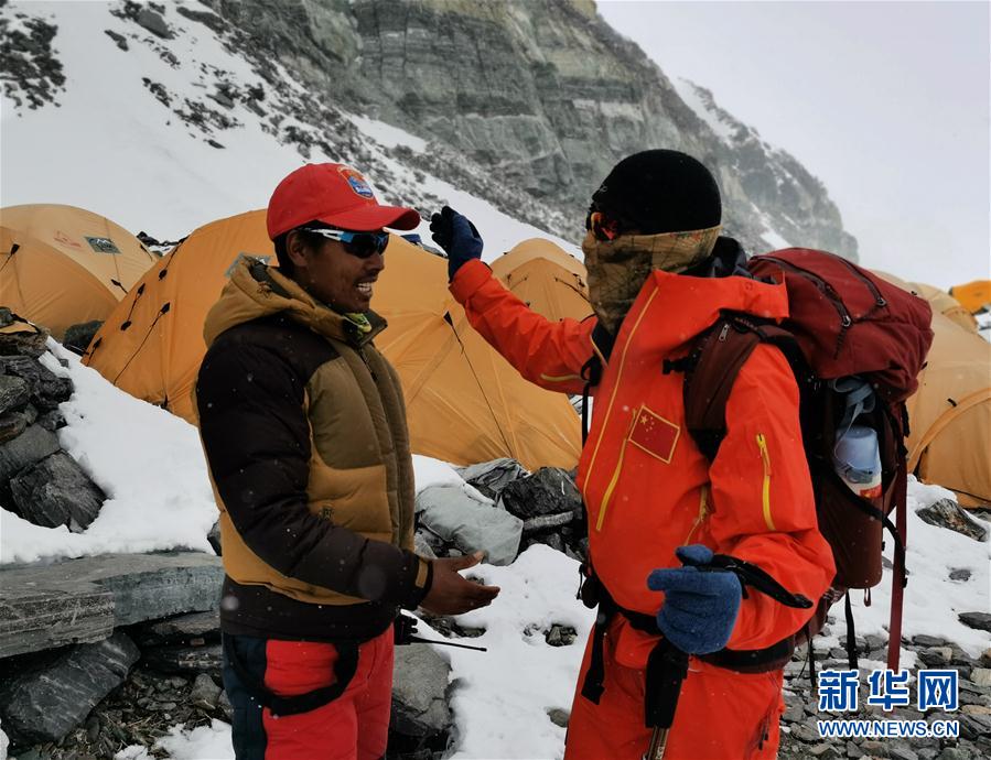 5月7日,2020珠峰高程測量登山隊進(jìn)駐海拔6500米的前進(jìn)營地。新華社特約記者拉巴攝