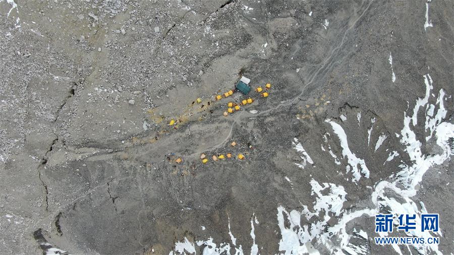 這是海拔5800米的過渡營地(5月8日攝,無人機(jī)照片)。珠峰過渡營地海拔5800米,是連接前進(jìn)營地和珠峰大本營的重要一站。登山愛好者從大本營徒步大約四個(gè)小時(shí)就能抵達(dá)過渡營地。此段路程亂石林立,同時(shí)也能欣賞壯美的冰川。新華社記者孫非攝