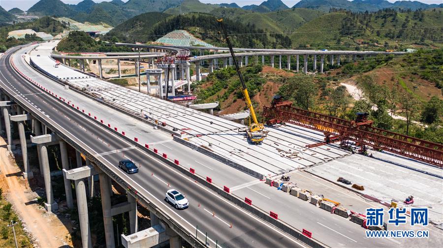 都安高速改擴(kuò)建路段的惠水特大橋(無(wú)人機(jī)照片,5月9日攝)。 新華社記者 陶亮 攝