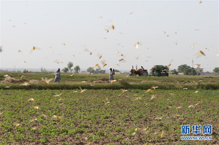 5月9日,在巴基斯坦旁遮普省杰格瓦爾地區(qū),當(dāng)?shù)鼐用裨谔锏乩锱臄z蝗蟲。據(jù)巴基斯坦媒體報(bào)道,該國旁遮普省和信德省一些地區(qū)近期再次遭遇沙漠蝗蟲侵襲,當(dāng)?shù)卣呀M織民眾進(jìn)行緊急消殺。新華社記者 劉天 攝