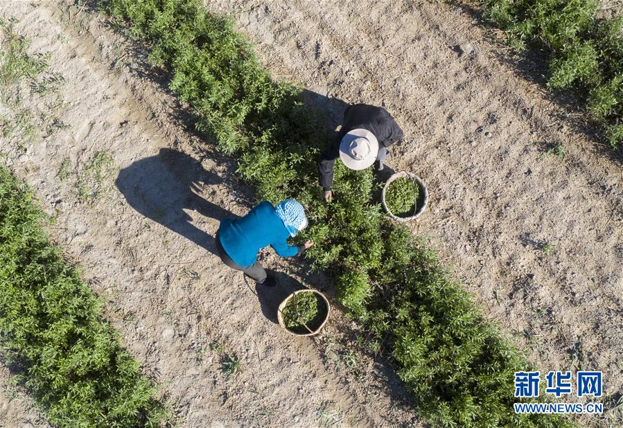 5月11日,采茶工在寧夏百瑞源賀蘭山基地采摘枸杞芽茶(無(wú)人機(jī)照片)。當(dāng)日,寧夏百瑞源賀蘭山基地枸杞芽茶全面進(jìn)入采摘季。據(jù)了解,該基地茶園面積300余畝,助力附近200多名農(nóng)民就業(yè)增收。新華社記者楊植森攝