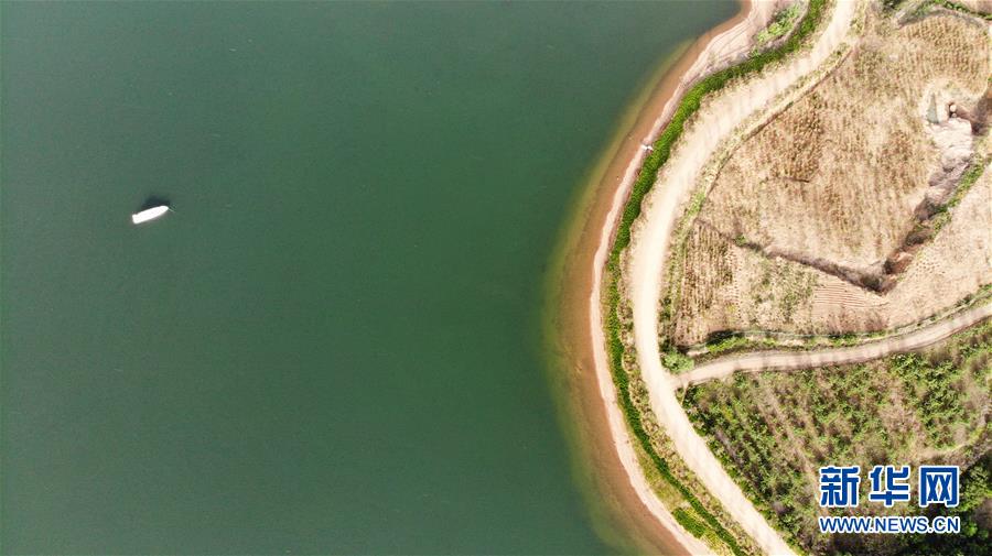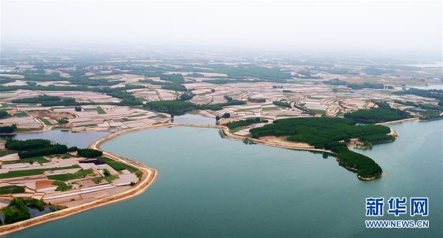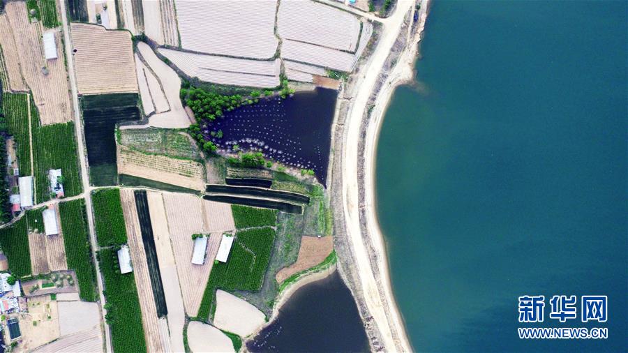 5月13日拍攝的青峰嶺水庫庫區(qū)景色(無人機(jī)照片)。新華社記者王凱攝