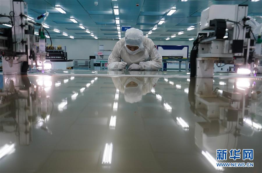 在位于宿遷激光產業(yè)園的江蘇華科創(chuàng)智技術有限公司,工人在觸摸屏生產車間作業(yè)(5月13日攝)。江蘇省宿遷市2016年初啟動建設宿遷激光產業(yè)園,目前,園區(qū)共有激光及相關配套企業(yè)50余家,涉及激光切割、激光打標、激光醫(yī)療等。當?shù)夭粩嗤晟茍@區(qū)配套設施,推動激光產業(yè)集聚,打造激光研發(fā)、裝備制造和加工應用的完整產業(yè)鏈。新華社記者季春鵬攝