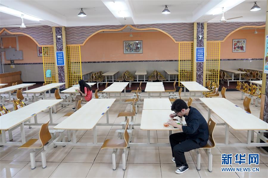 5月15日,在西南大學(xué)的一個(gè)學(xué)生食堂內(nèi),學(xué)生按照要求一人一桌吃午餐。當(dāng)日,重慶西南大學(xué)迎來疫情以來首批返校大學(xué)生。據(jù)介紹,按照疫情防控的需要,重慶市高校2020年春季學(xué)期從5月11日起按照“一校一策”原則,實(shí)行錯(cuò)峰錯(cuò)時(shí)分批次有序開學(xué)復(fù)課。新華社記者劉潺攝