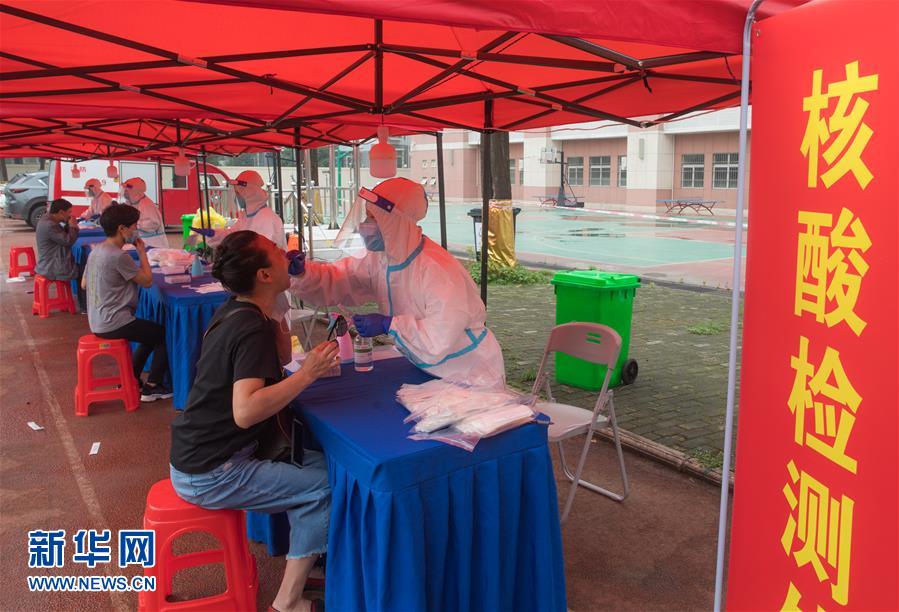 5月15日,在武漢華生漢口城市廣場四期檢測點,工作人員對市民進行核酸檢測。近日,武漢將對全市市民有序開展核酸檢測,進一步摸清無癥狀感染者底數(shù),進而有效管控。新華社記者肖藝九攝