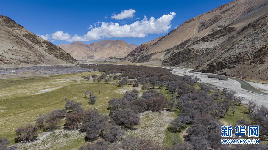 珠穆朗瑪峰國(guó)家級(jí)自然保護(hù)區(qū)內(nèi)的沙棘林(5月16日攝,無人機(jī)照片)。新華社記者孫非攝