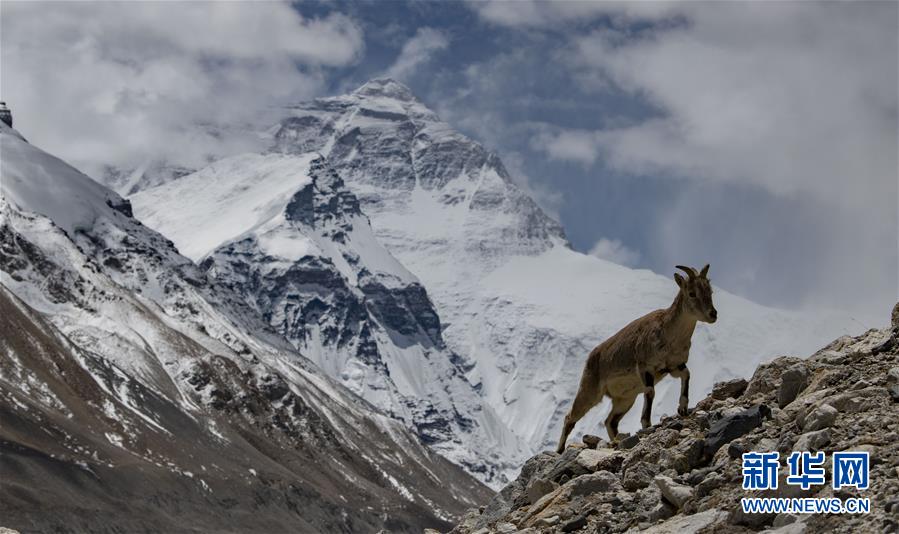 棲息在珠穆朗瑪峰國家級自然保護區(qū)內(nèi)的巖羊(4月29日攝)。新華社記者普布扎西攝