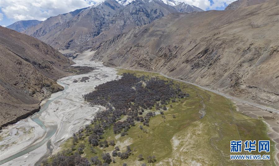 珠穆朗瑪峰國(guó)家級(jí)自然保護(hù)區(qū)內(nèi)的沙棘林和濕地(5月16日攝,無(wú)人機(jī)照片)。新華社記者普布扎西攝
