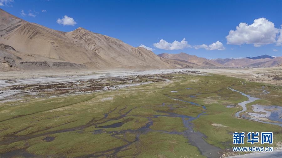 珠穆朗瑪峰國(guó)家級(jí)自然保護(hù)區(qū)里的濕地(5月16日攝,無(wú)人機(jī)照片)。新華社記者晉美多吉攝