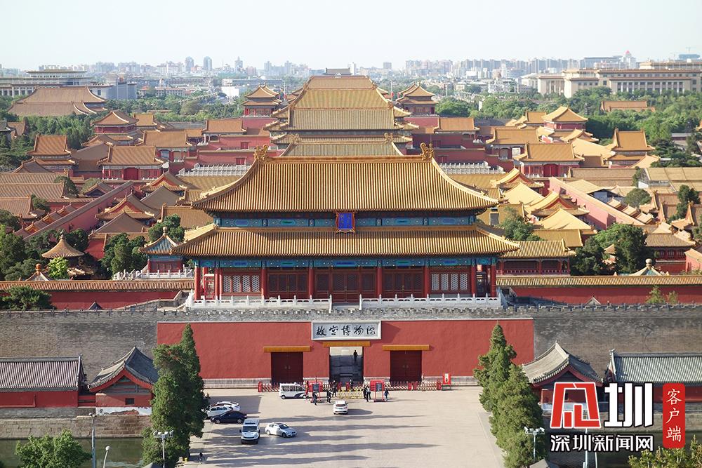 北京碧空萬里 游客登景山公園賞故宮美景
