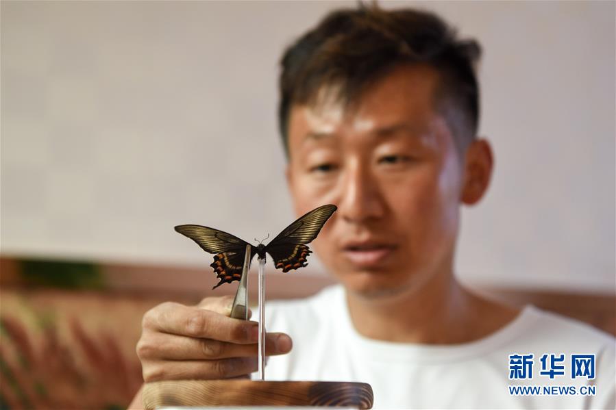 在吉木薩爾縣七彩蝶園,關(guān)富云在制作蝴蝶標(biāo)本(5月15日攝)。走進(jìn)關(guān)富云的七彩蝶園,游客不僅可以近距離接觸翩翩起舞的蝴蝶,還可以欣賞蝴蝶破繭成蝶的蛻變過程。今年34歲的關(guān)富云用9年的時(shí)間實(shí)現(xiàn)了自己的“蝴蝶夢”,完成美麗的“蝶變”。關(guān)富云家住新疆吉木薩爾縣北地社區(qū)。2011年,他看到一檔農(nóng)業(yè)致富節(jié)目,萌生了養(yǎng)殖蝴蝶的想法。關(guān)富云說,當(dāng)時(shí)蝴蝶養(yǎng)殖還是一種新興產(chǎn)業(yè),他抱著試一試的想法,在海南學(xué)習(xí)了3個(gè)月蝴蝶養(yǎng)殖,帶回100多個(gè)蝶蛹在家試驗(yàn)養(yǎng)殖。蝴蝶的生存周期短,在當(dāng)?shù)仞B(yǎng)殖需要克服溫度、濕度、病蟲害等問題。關(guān)富云不斷嘗試,越挫越勇,羽化成功的蝴蝶在2014年終于突破了萬只。蝴蝶的色彩艷麗,活體蝴蝶可用于婚慶、開業(yè)慶典等活動(dòng)中放飛,可以取得很好的收益。但它的生命短暫,如何才能最大化蝴蝶的效益,留住它的美呢?關(guān)富云動(dòng)起了心思,開始嘗試制作標(biāo)本和蝶翅畫?!昂宛B(yǎng)殖不同,做蝶翅畫是個(gè)創(chuàng)作的過程,從選擇標(biāo)本到粘貼,每一步都要突出美感。”關(guān)富云介紹,一幅色彩明艷、栩栩如生的蝶翅畫耗時(shí)多日才能完成。如今,關(guān)富云的活體蝴蝶和蝶翅畫通過線上線下銷售,產(chǎn)品還銷往北京、廈門等地。關(guān)富云的蝴蝶產(chǎn)品得到市場的認(rèn)可,政府也對(duì)他給予大力支持。2019年,吉木薩爾縣在泉子街鎮(zhèn)建起蝴蝶觀賞園,吸引了不少游客到此參觀游玩。對(duì)于未來的發(fā)展,關(guān)富云信心滿滿,“我希望把蝴蝶產(chǎn)業(yè)發(fā)展到天山南北,讓人們?cè)诤涞亩疽材苡^賞到蝴蝶,并且讓更多人參與其中,致富脫貧”。新華社記者丁磊攝