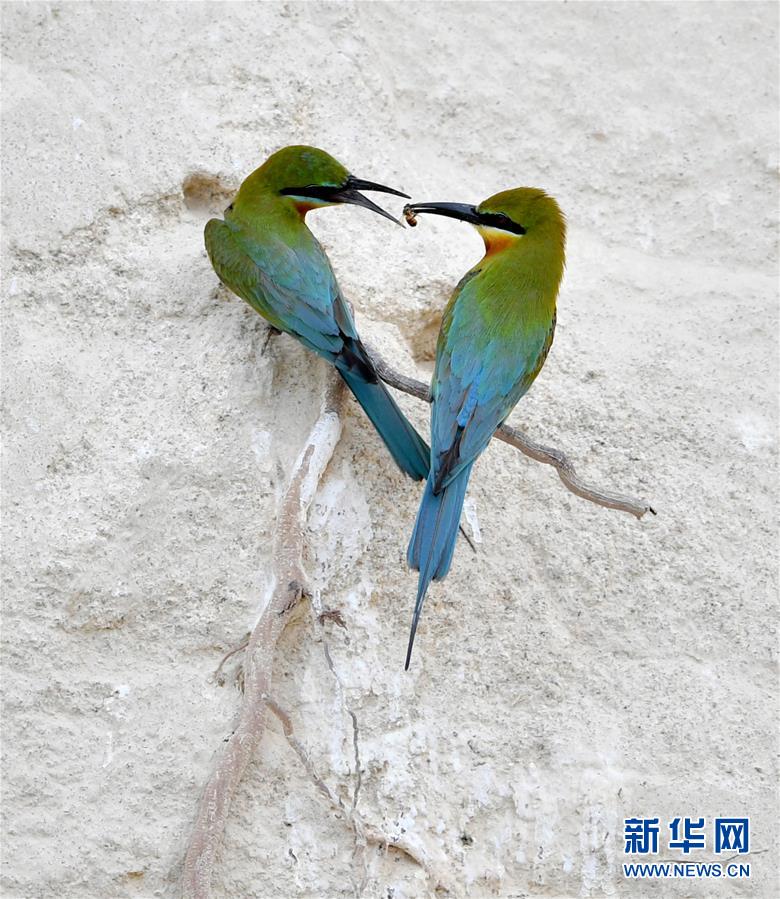這是5月19日在廈門五緣灣栗喉蜂虎自然保護區(qū)拍攝的兩只栗喉蜂虎。近日,大批栗喉蜂虎來到廈門五緣灣栗喉蜂虎自然保護區(qū)棲息、繁殖。新華社記者魏培全攝