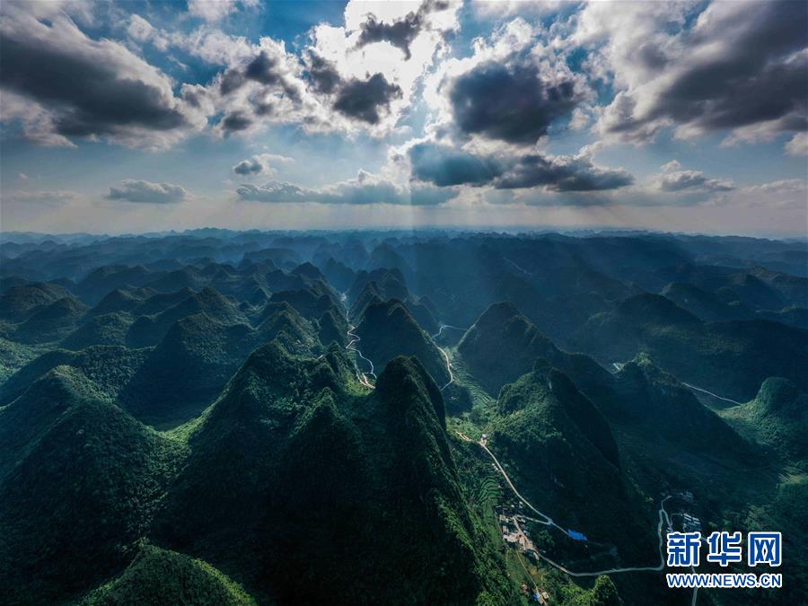 這是大化瑤族自治縣七百弄鄉(xiāng)弄平村的風(fēng)光(5月14日攝,無人機(jī)照片)。新華社記者張愛林?jǐn)z