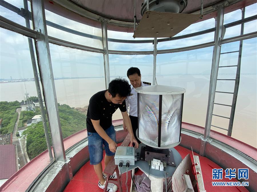 5月20日,在寧波七里嶼,葉家第五代燈塔工葉超群(左)和前來(lái)運(yùn)送物資的父親葉靜虎在燈塔上查看設(shè)備。葉超群2013年起在七里嶼燈塔工作,葉靜虎從燈塔工崗位上退下來(lái)后,目前在寧波航標(biāo)處后勤事務(wù)中心工作。新華社記者翁忻旸攝