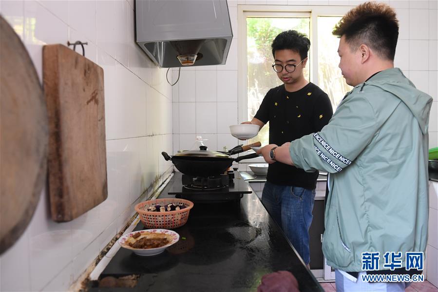 5月20日,在寧波七里嶼,葉家第五代燈塔工葉超群(左)和同事葉露在廚房做飯。新華社記者翁忻旸攝