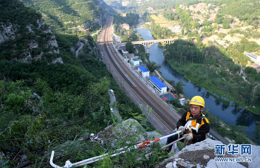 在太行山深處的中國(guó)鐵路鄭州局集團(tuán)有限公司月山工務(wù)段,有一群被稱為捅山工的人。每年汛期來(lái)臨前,他們要對(duì)山體進(jìn)行檢查、清理,在懸崖峭壁間“行走”,揮動(dòng)著手中的鋼釬,排除威脅鐵路行車安全的危石。