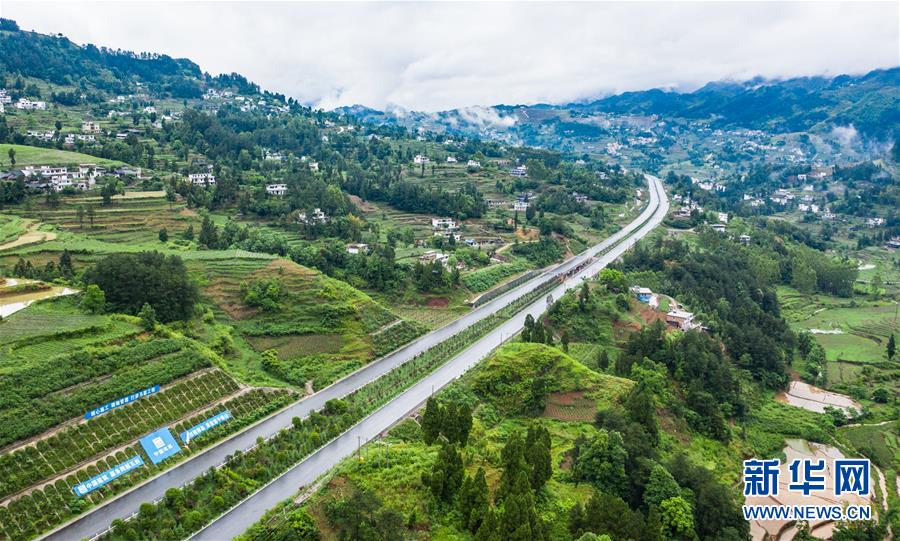 這是正習(xí)高速公路羊磴至夜郎路段(左側(cè)道路)(無人機照片,5月21日攝)。新華社記者陶亮攝
