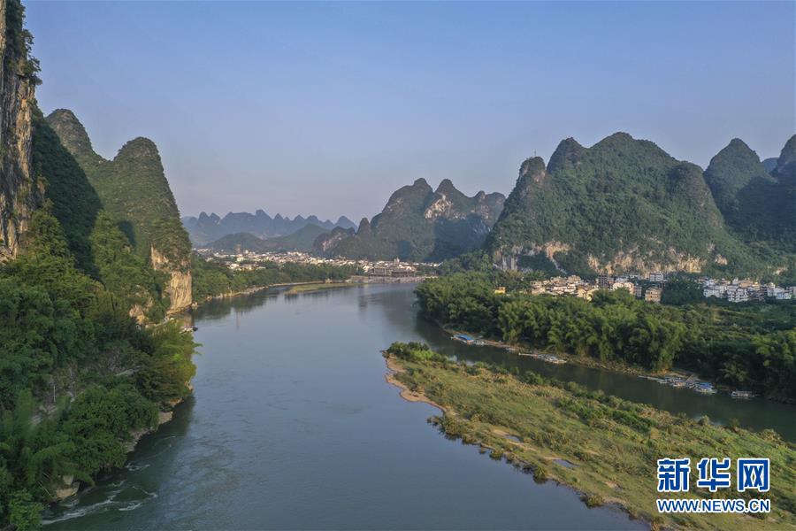 這是在廣西桂林市陽朔縣興坪鎮(zhèn)拍攝的山水風(fēng)光(5月19日攝,無人機(jī)照片)?!吧n蒼森八桂,茲地在湘南。江作青羅帶,山如碧玉篸……”一千多年前,唐朝詩人韓愈寫盡桂林山水之美。初夏時(shí)節(jié),在廣西桂林市陽朔縣興坪鎮(zhèn),藍(lán)天白云下,煙雨朦朧中,桂林山水盡顯秀美。新華社記者 曹祎銘 攝