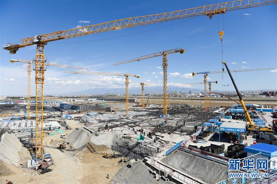 5月23日,工人在烏魯木齊機場改擴建工程施工現(xiàn)場作業(yè)。新華社記者丁磊攝