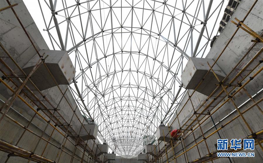 5月23日,工人在??谖拿鳀|越江通道項目江西段主線出入口施工。新華社記者楊冠宇攝