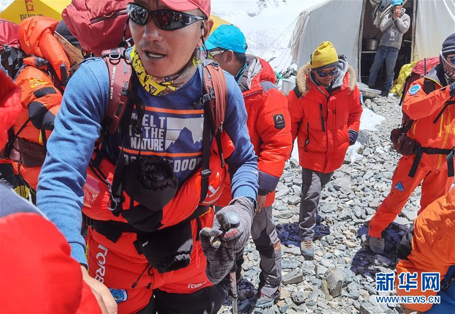 5月24日,2020珠峰高程測量登山隊部分人員從海拔6500米的前進營地出發(fā)。新華社特約記者拉巴攝