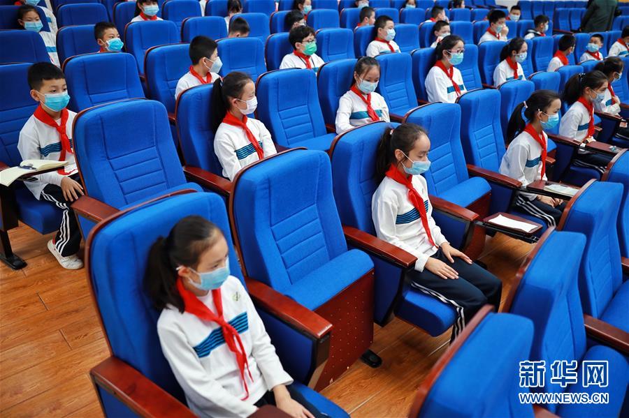 5月25日,貴陽市中天北京小學(xué)未來方舟校區(qū)學(xué)生在開學(xué)第一課上聽講。新華社記者歐東衢攝