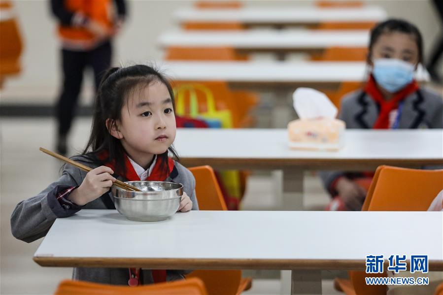 5月25日,貴陽市南明區(qū)苗苗實驗學(xué)校的學(xué)生吃午餐。新華社記者楊文斌攝