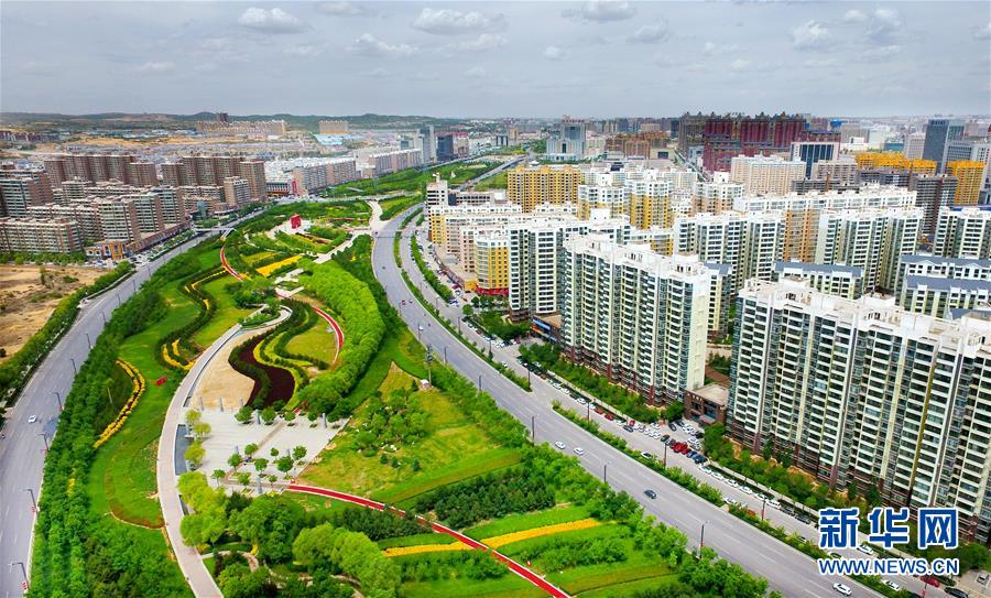 5月25日拍攝的榆林市高新區(qū)綠化走廊(無人機照片)。新華社記者陶明攝