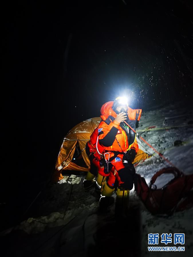 5月27日,2020珠峰高程測量登山隊從海拔8300米的突擊營地出發(fā)。新華社特約記者扎西次仁攝