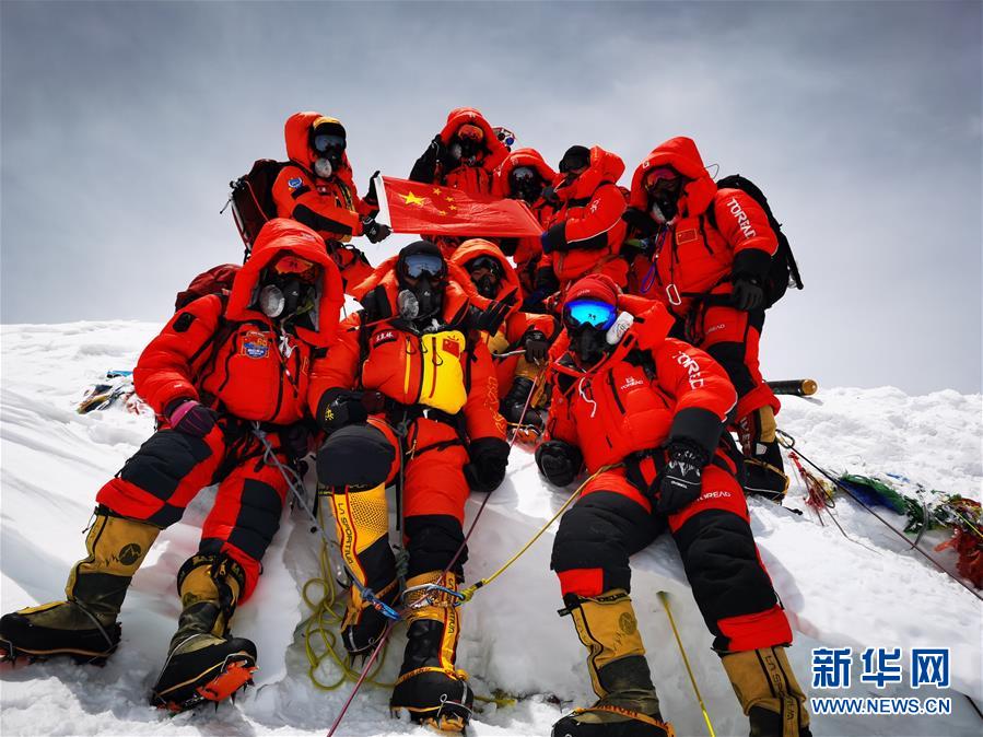 5月27日,2020珠峰高程測量登山隊(duì)在峰頂合影留念。