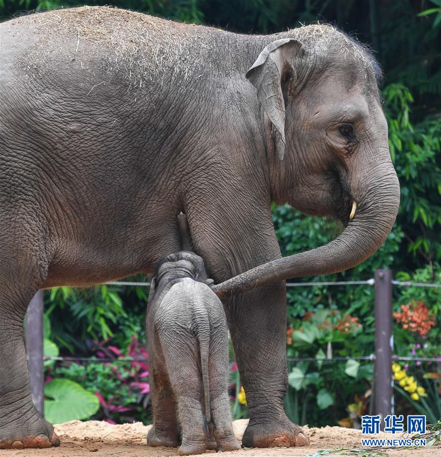 5月27日,廣州長隆的新生亞洲象寶寶在吃奶。在不到一個月的時間內(nèi),廣州長隆野生動物世界的亞洲象家族迎來兩名新丁。4月30日,亞洲象莉娜產(chǎn)下一頭公象,出生時體重88公斤;5月12日,亞洲象伊拉產(chǎn)下一頭母象,出生體重達108公斤。大象媽媽莉娜和伊拉均為長隆野生動物世界亞洲象種群繁育基地繁殖的亞洲象。至此,長隆亞洲象家族已繁衍至第三代,現(xiàn)共有27頭大象。新華社記者劉大偉攝