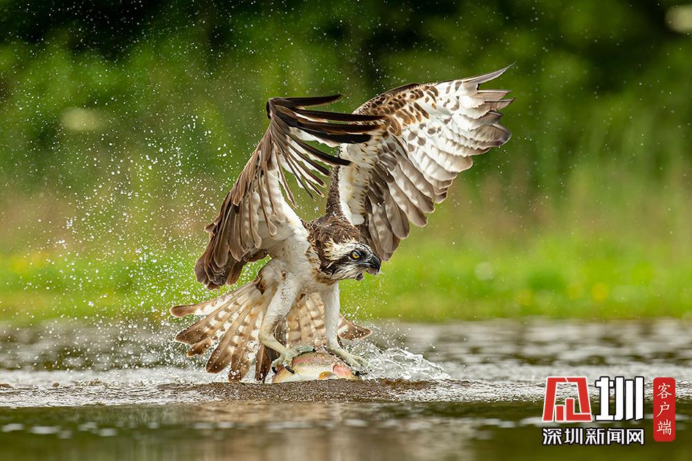 魚(yú)鷹俯沖入水捕魚(yú) 伺機(jī)而動(dòng)“快準(zhǔn)狠”