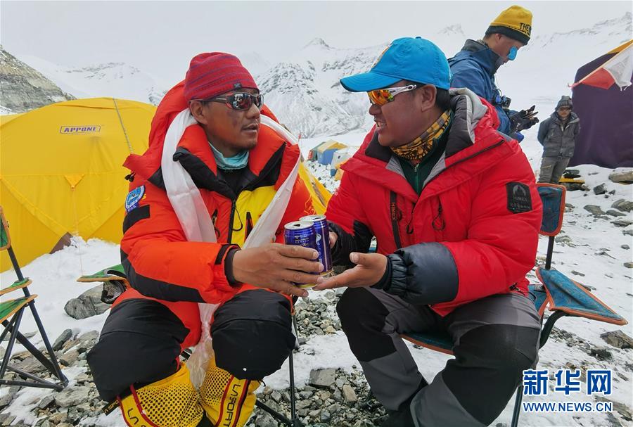 5月28日,測量登山隊(duì)員返回前進(jìn)營地后慶祝登頂。當(dāng)日,中國2020珠峰高程測量登山隊(duì)安全返回海拔6500米的前進(jìn)營地。5月27日,測量登山隊(duì)成功登頂珠穆朗瑪峰并完成峰頂測量等工作。新華社特約記者扎西次仁攝