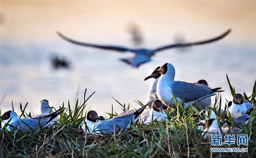 5月27日在陜西省神木市紅堿淖拍攝的遺鷗。陜西省神木市紅堿淖是中國最大的沙漠淡水湖,近年來隨著周邊生態(tài)環(huán)境改善,紅堿淖水位逐年提升,水域面積不斷擴大,每年四至八月,都會吸引大批遺鷗來此繁衍棲息,已成為遺鷗繁殖的重要基地。新華社記者劉瀟攝