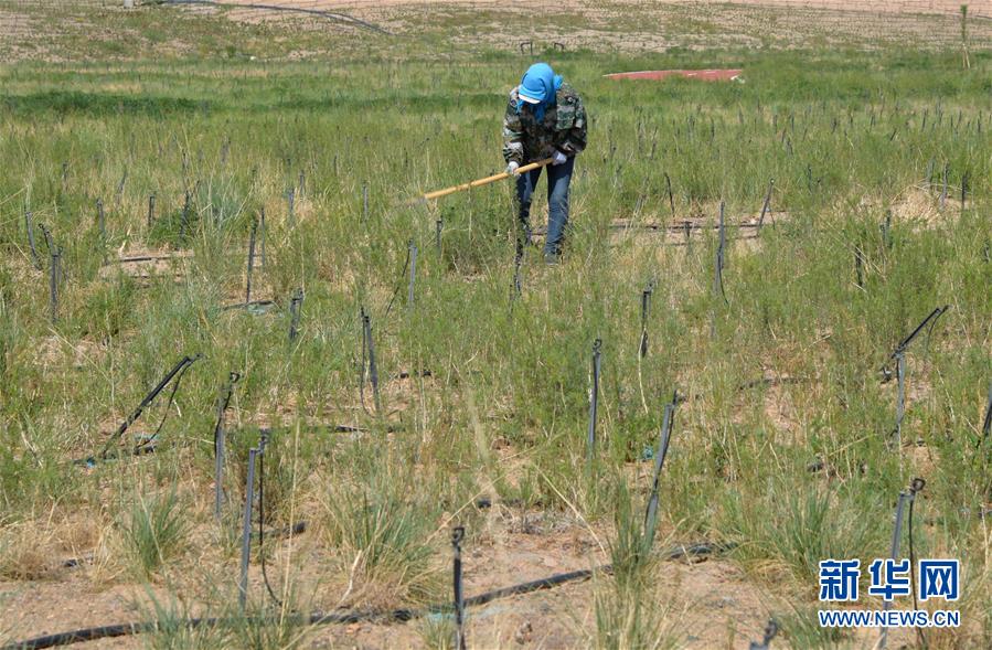 5月28日,工人在巴丹吉林鎮(zhèn)生態(tài)修復(fù)項目南部河道附近進行補植作業(yè)。2017年以來,內(nèi)蒙古阿拉善右旗在巴丹吉林鎮(zhèn)開展生態(tài)修復(fù)項目,種植適合在當?shù)厣L的馬蓮、紅柳等植物,修復(fù)生態(tài)的同時也起到美化作用。巴丹吉林鎮(zhèn)是巴丹吉林沙漠旅游景區(qū)的游客集散地,這里常年干旱少雨,水資源匱乏。新華社記者徐欽攝