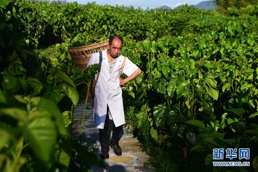 5月29日,奉節(jié)縣新民鎮(zhèn)中嶺村蠶桑產(chǎn)業(yè)扶貧基地工作人員在背運桑葉。新華社記者 王全超 攝