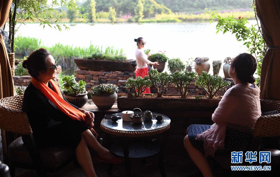 6月2日,游客在云南丘北縣普者黑仙人洞村一家客棧休閑。新華社記者楊宗友攝。