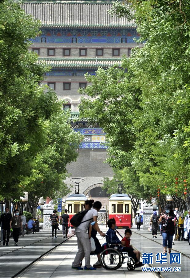 6月3日,市民及游客行走在前門步行街。近日,游人和市民紛紛來到北京市的王府井、西單、前門大街等著名商業(yè)街購物休閑,這些老商業(yè)街開始逐步恢復昔日的繁華。新華社記者李欣攝。