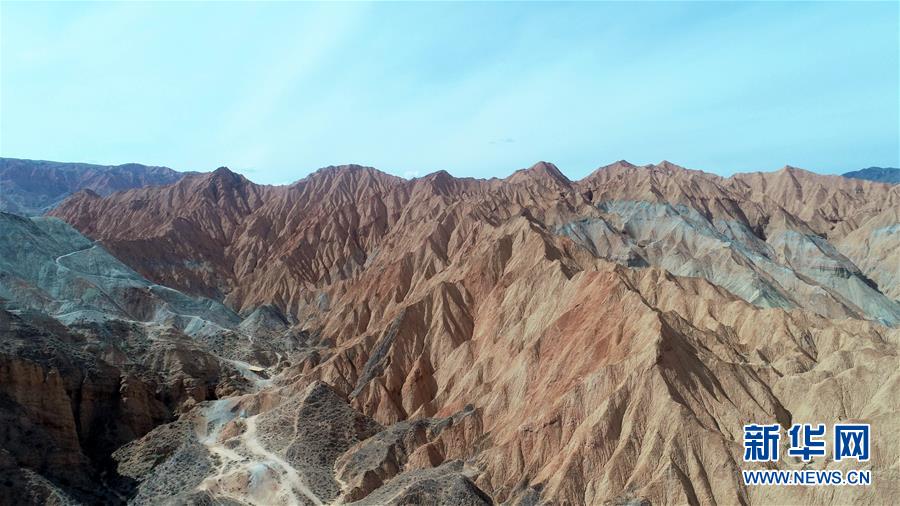 這是6月5日拍攝的位于青海省海南藏族自治州貴德縣境內(nèi)的丹霞地貌(無(wú)人機(jī)照片)。在青海省海南藏族自治州貴德縣境內(nèi),色彩斑斕的丹霞地貌美如畫卷。新華社記者趙玉和攝。