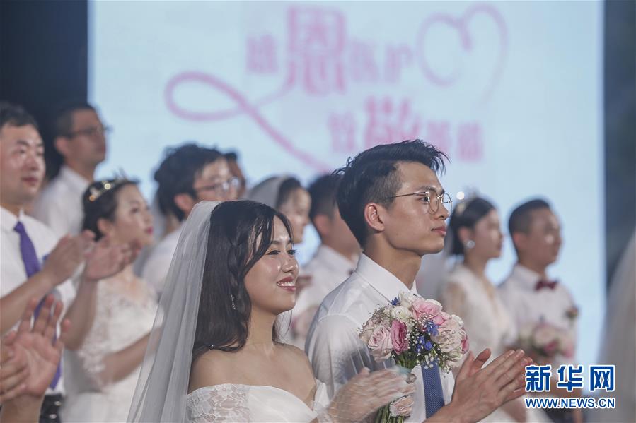 6月6日,新人在海南博鰲樂城國際醫(yī)療旅游先行區(qū)參加集體婚禮。 新華社記者 張玉薇 攝