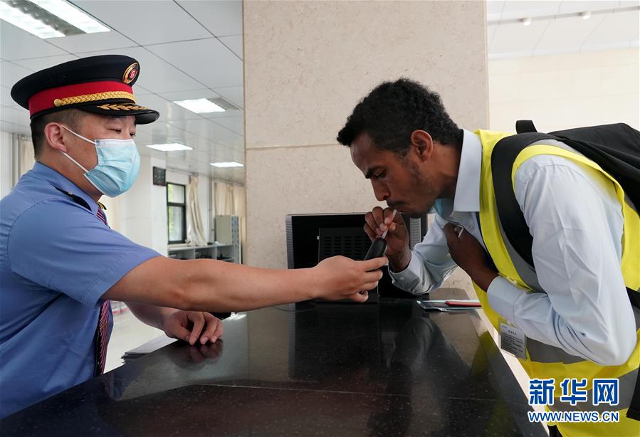6月5日,特瑞薩在出勤前進(jìn)行酒精測(cè)試。 新華社記者 李安 攝