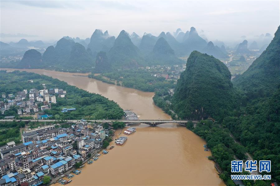 這是洪水奔流的漓江流過廣西陽朔縣境內(nèi)(6月8日攝,無人機(jī)照片)。6月6日至8日,廣西陽朔縣普降暴雨,局部降特大暴雨,全縣9個鄉(xiāng)鎮(zhèn)出現(xiàn)洪澇災(zāi)害。目前,全縣正有序開展災(zāi)后生產(chǎn)生活恢復(fù)。新華社記者陸波岸攝