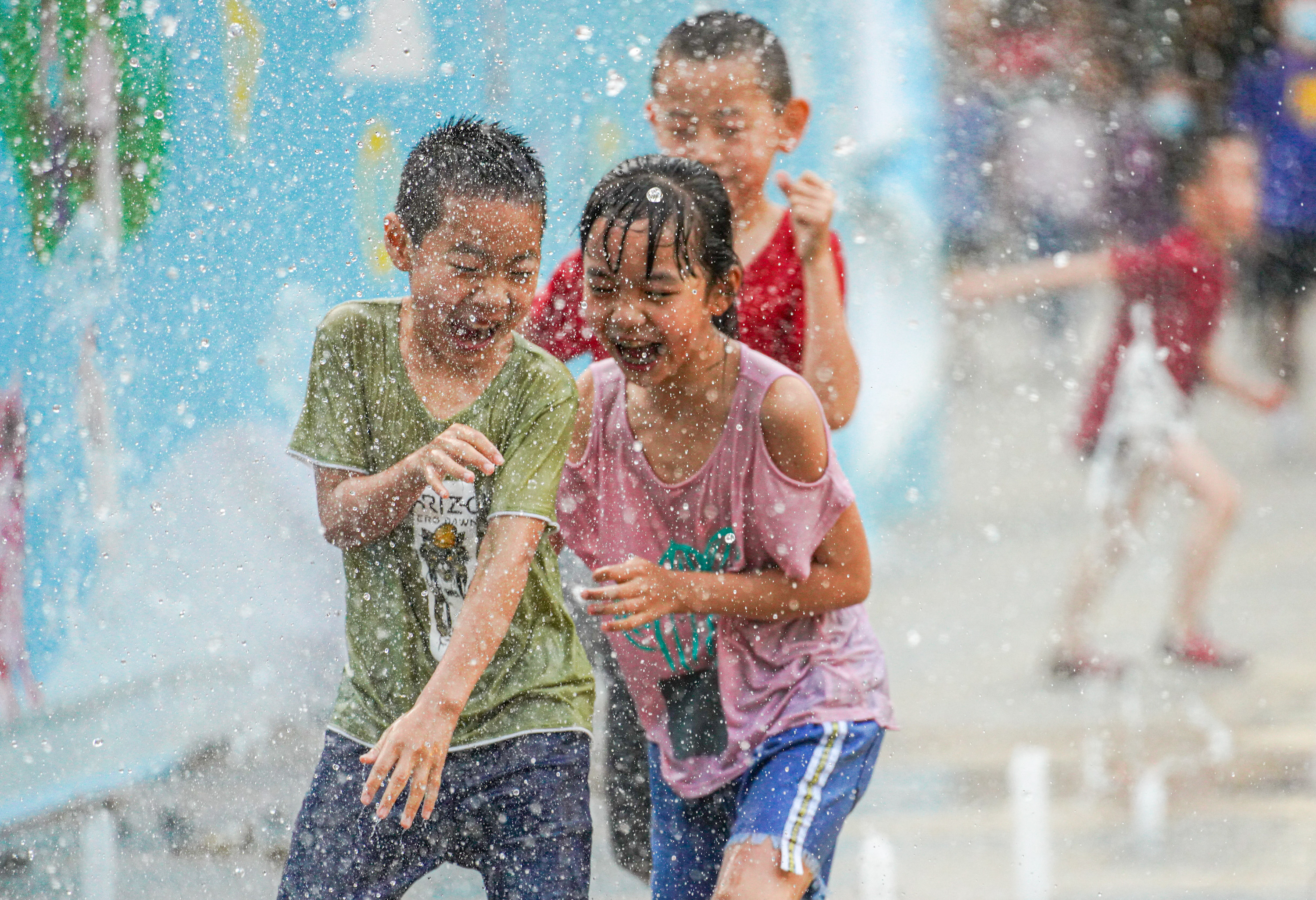 2020年6月9日報(bào)道,近期,今年以來最大范圍高溫天氣“炙烤”北方,多地高溫屢創(chuàng)紀(jì)錄,中央氣象臺已連續(xù)3天發(fā)布高溫預(yù)警,同時(shí),高溫少雨也導(dǎo)致一些地區(qū)出現(xiàn)嚴(yán)重旱情。圖為2020年6月4日,北京三里屯噴泉廣場,很多孩子聚集在此,水中玩耍異?;鸨?。