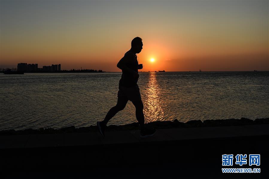 夜幕將至,一位市民在??谑兰o(jì)公園濱海步道跑步(5月15日拍攝)。近年來,夜跑成為越來越多都市人熱衷的健身方式之一。在海南???,每當(dāng)夜幕降臨,“夜跑族”來到海口萬綠園、世紀(jì)公園等夜跑場(chǎng)所跑步,用一身酣暢淋漓的汗水?dāng)[脫白天工作中的壓力,享受跑步帶來的歡愉。新華社記者 蒲曉旭 攝