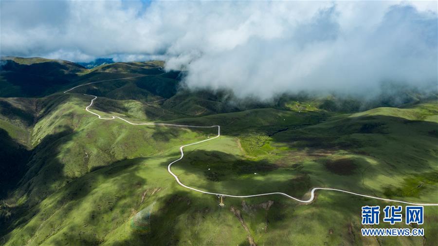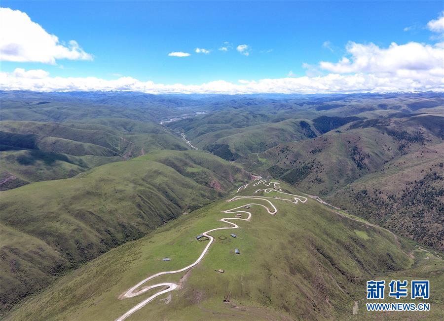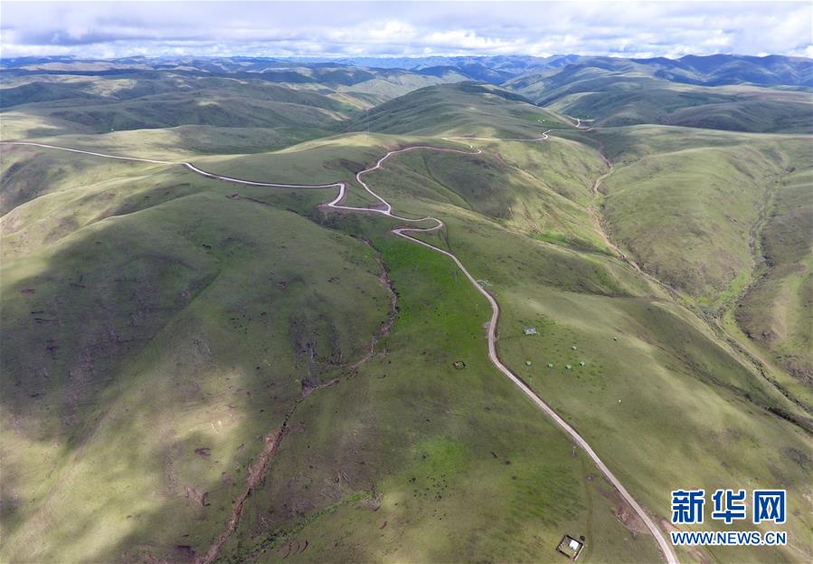 這是6月13日無(wú)人機(jī)航拍的“上南天路”和路邊的牧民居所。居住在路邊的牧民,因?yàn)橛辛诉@條路,出行更加方便。新華社記者 沈伯韓 攝