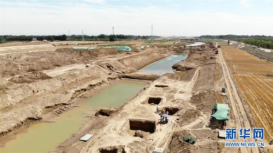 這是6月14日拍攝的山東小清河章丘段考古發(fā)掘現(xiàn)場(chǎng)(無(wú)人機(jī)照片)。近日,濟(jì)南市考古研究所考古工作隊(duì)在對(duì)小清河章丘段進(jìn)行考古調(diào)查和勘探時(shí),發(fā)現(xiàn)了13座年代集中在北朝末期至唐朝初期的古墓。新華社記者 王凱 攝