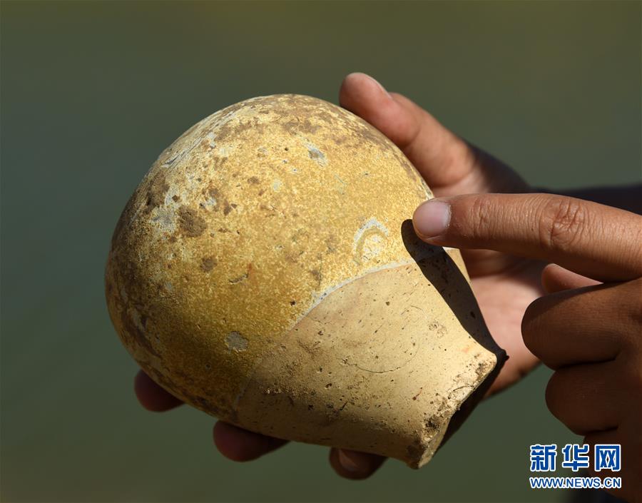 6月14日,在山東小清河章丘段考古發(fā)掘現(xiàn)場,考古工作者展示出土的瓷瓶。近日,濟(jì)南市考古研究所考古工作隊在對小清河章丘段進(jìn)行考古調(diào)查和勘探時,發(fā)現(xiàn)了13座年代集中在北朝末期至唐朝初期的古墓。新華社記者 王凱 攝