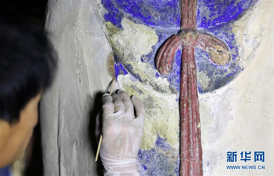 6月8日,工作人員對奉國寺的彩繪泥塑進行保護修復。新華社記者 姚劍鋒 攝