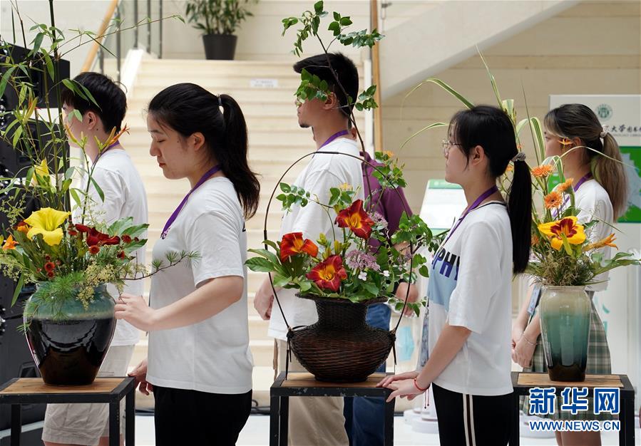 6月13日,上海應(yīng)用技術(shù)大學(xué)的學(xué)生們設(shè)計創(chuàng)作的萱草花藝作品即將在開幕式現(xiàn)場亮相。當(dāng)日,“2020中國(上海)萱草文化節(jié)”在上海應(yīng)用技術(shù)大學(xué)開幕,校園里數(shù)百個品種的萱草花競相綻放,萱草科研推廣、萱草文化交流等多項活動同時舉行。新華社記者 劉穎 攝