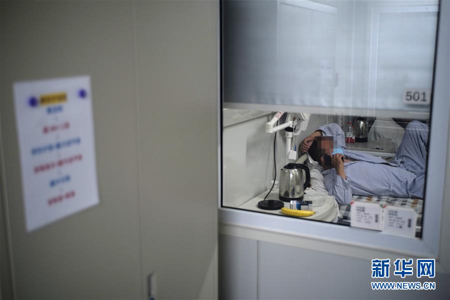 6月16日,一名患者在北京地壇醫(yī)院隔離病房內(nèi)打電話。新華社記者 彭子洋 攝